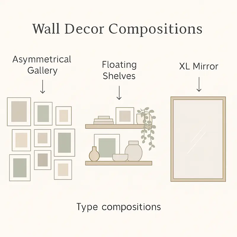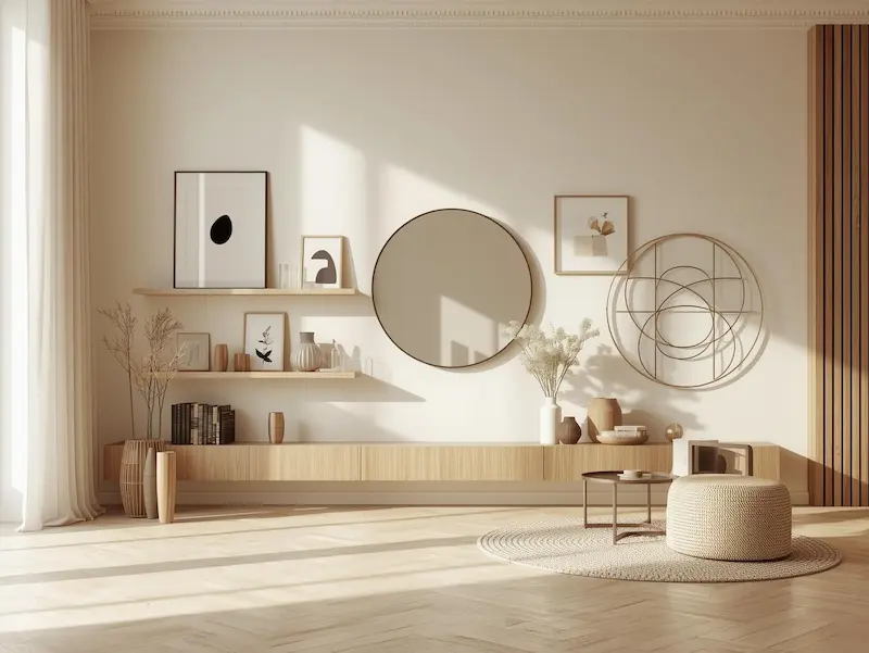 Une decoration murale réussie respecte les lignes de circulation de la pièce. Un mur trop chargé peut alourdir l’espace et créer une sensation d’encombrement. À l’inverse, un mur équilibré — quelques éléments bien placés, un rythme visuel doux — facilite la fluidité du regard et le sentiment d’espace. Veillez toujours à laisser des zones respirantes : le vide est aussi un élément de composition.