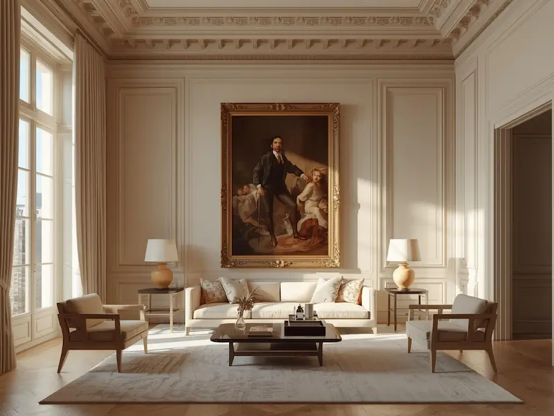 Un tableau imposant transforme instantanément un mur vide. C’est souvent l’option la plus simple, mais aussi la plus impactante. Laissez-le respirer autour pour maximiser son effet.