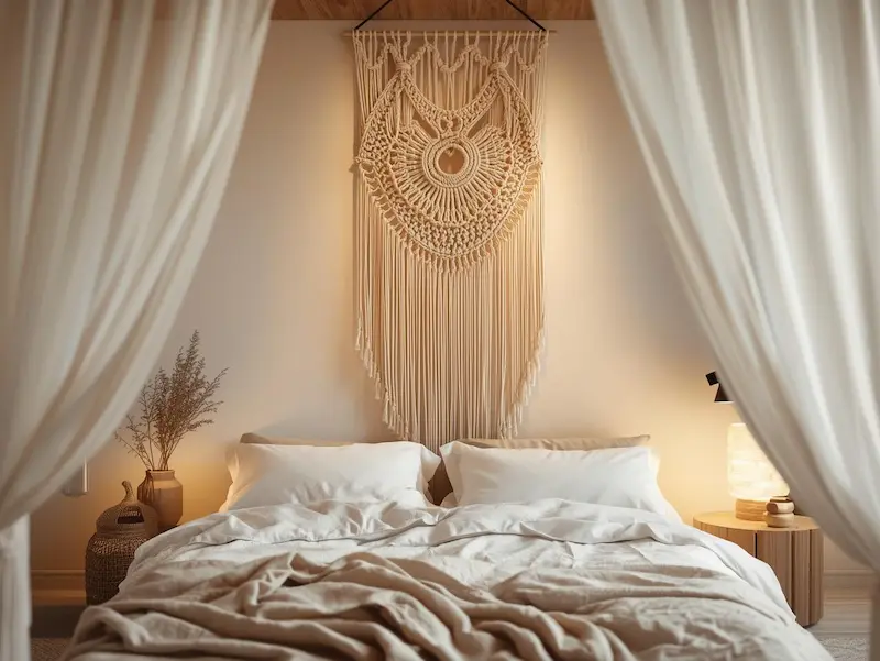 Macramé / TissuCosy, minimaliste, douxChambreDiffuse une ambiance tendre sans alourdir visuellement.