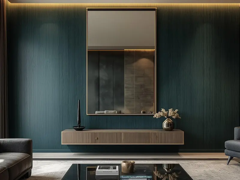 C’est l’un des choix les plus efficaces pour sublimer un mur vide. Un grand miroir apporte lumière, profondeur et élégance. Parfait pour un salon contemporain ou un couloir sombre.