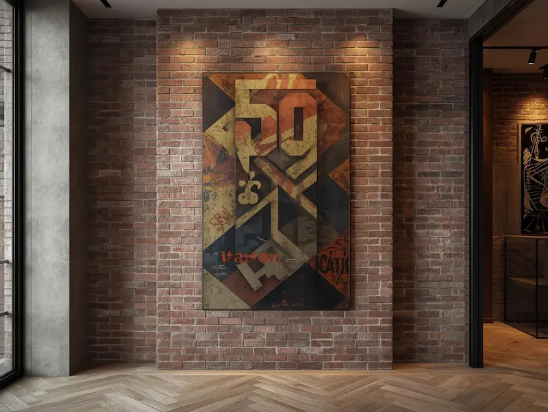 MétalIndustrielle, graphique, moderneSalon, entréeStructure le mur et ajoute du caractère.