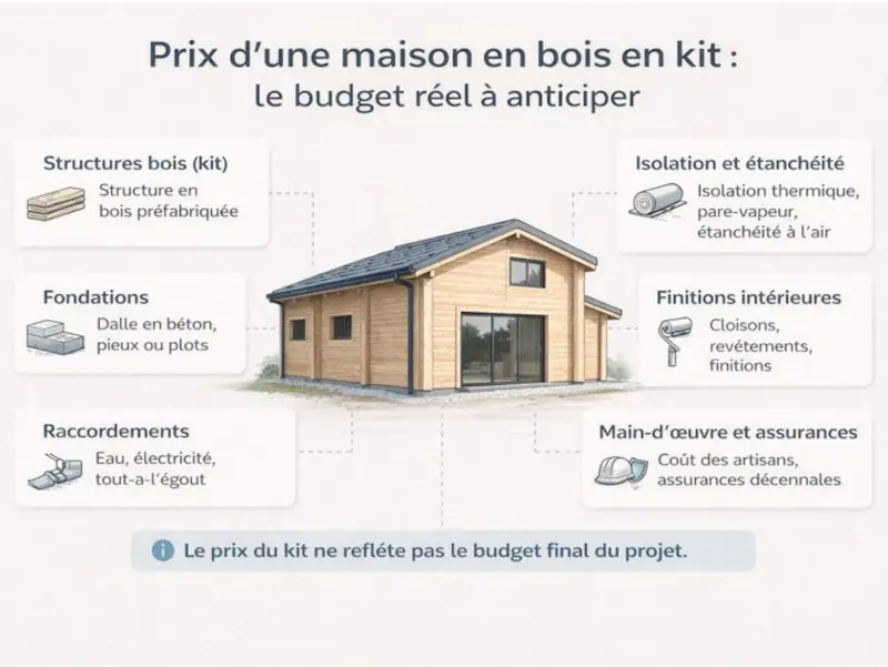 Le prix affiché d’une maison en bois en kit correspond rarement au coût final. Il inclut le plus souvent la structure ou les éléments préfabriqués, mais laisse de côté de nombreux postes essentiels : fondations, raccordements, isolation complémentaire, finitions, main-d’œuvre et assurances.